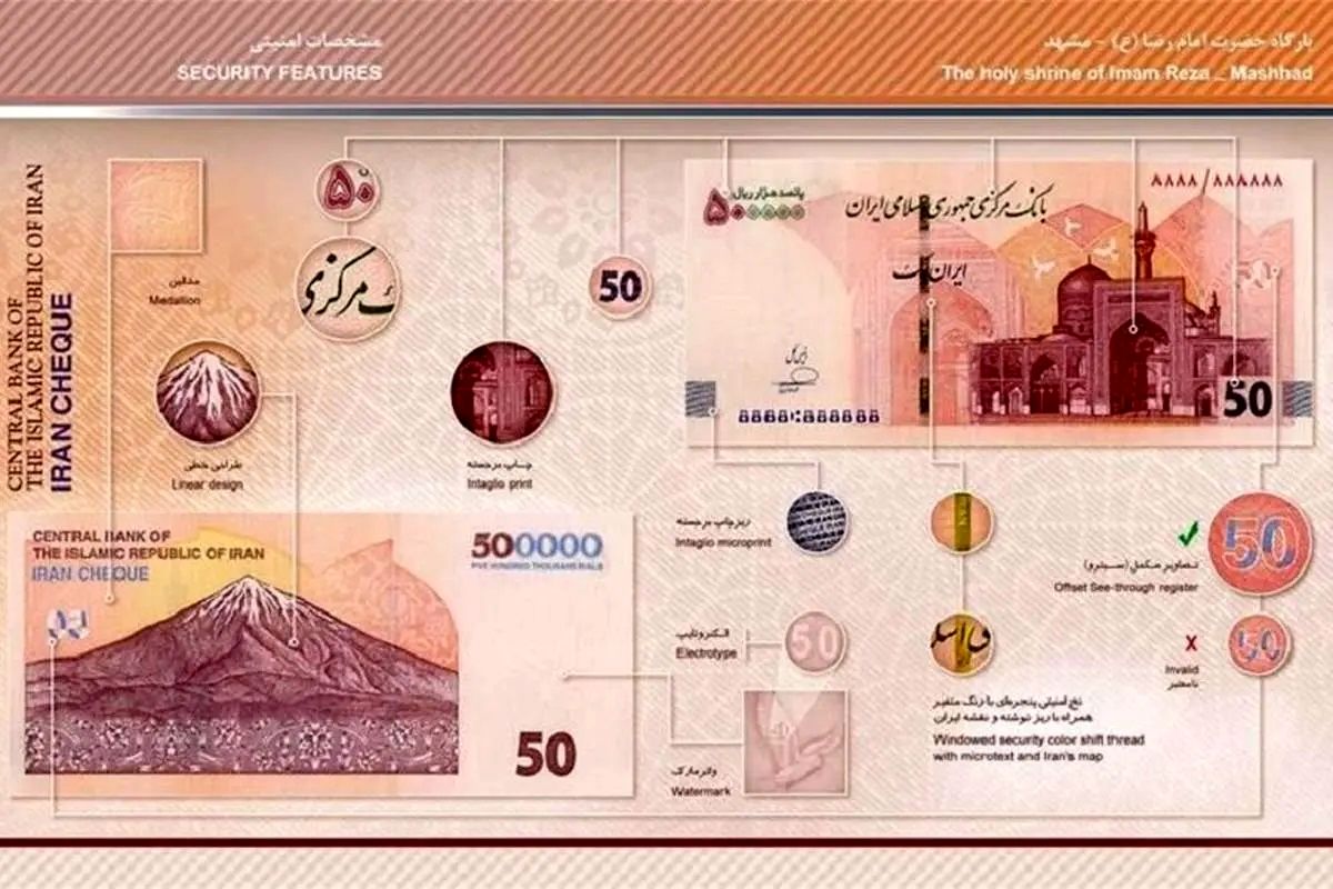 قسمتی از عدد ۵۰ در رو و قسمتی دیگر از آن در پشت ایران‌چک چاپ شده است که در مقابل نور یکدیگر را تکمیل می‌کنند و عدد ۵۰ را به صورت کامل نمایان می‌سازند.